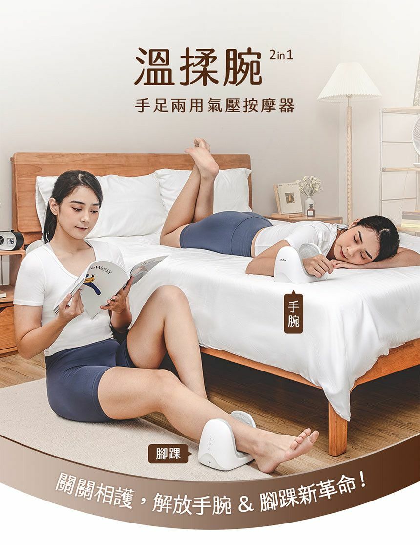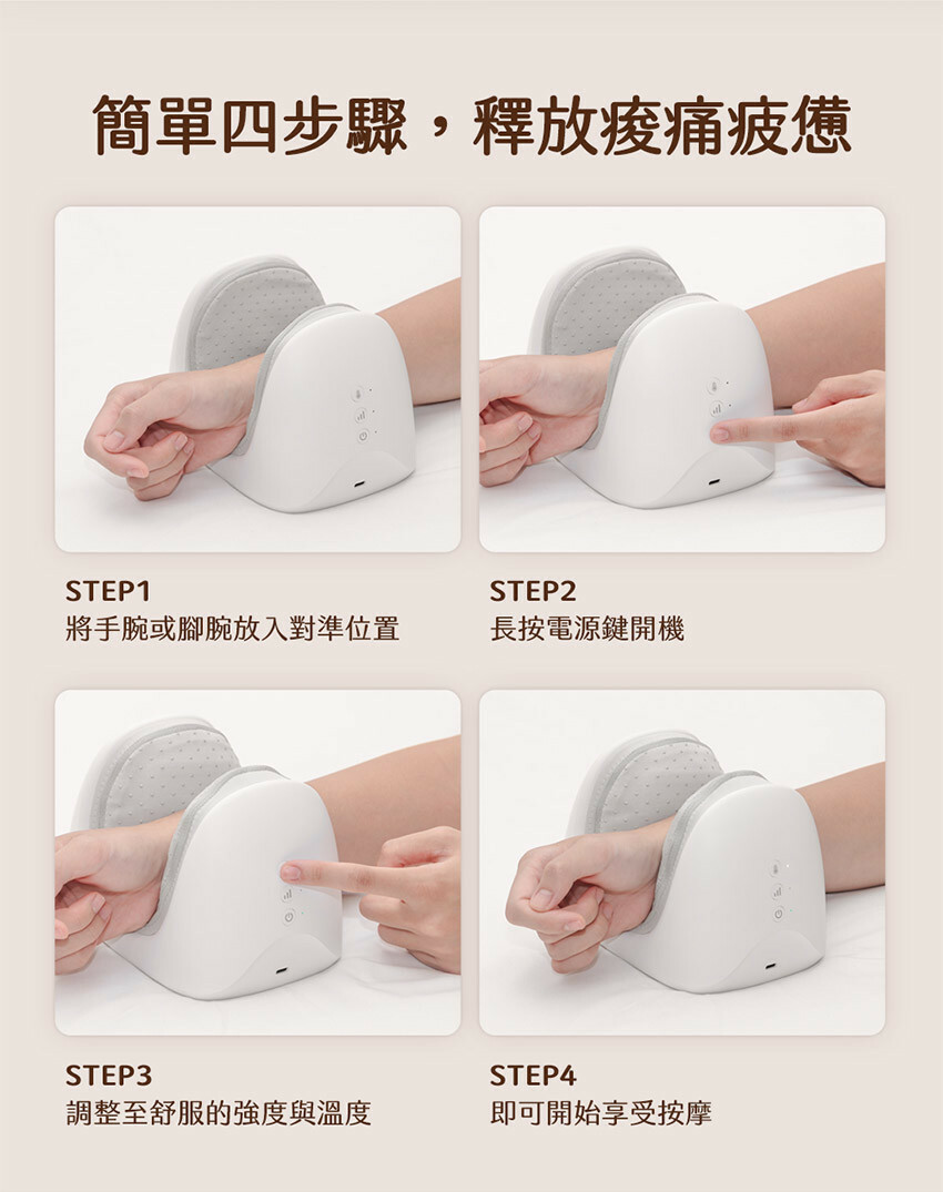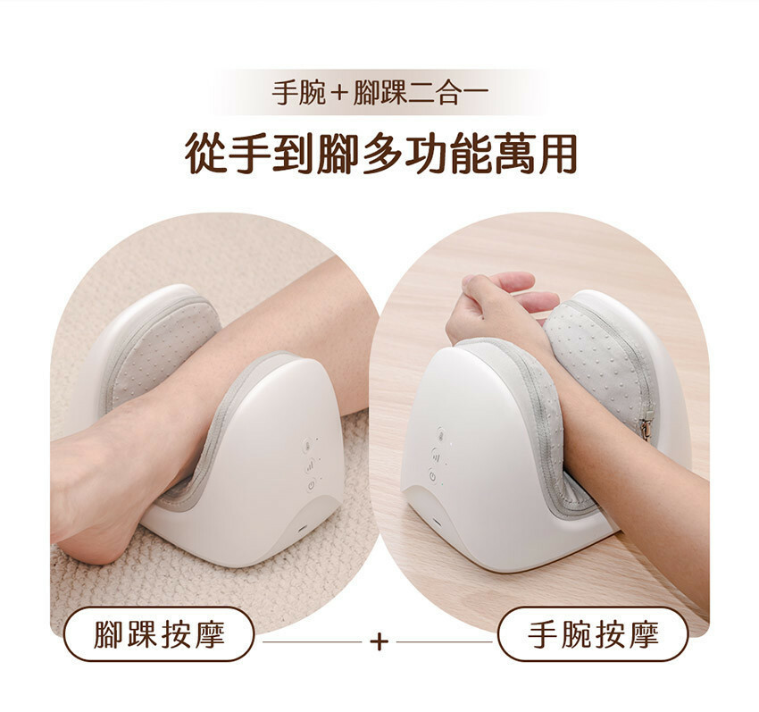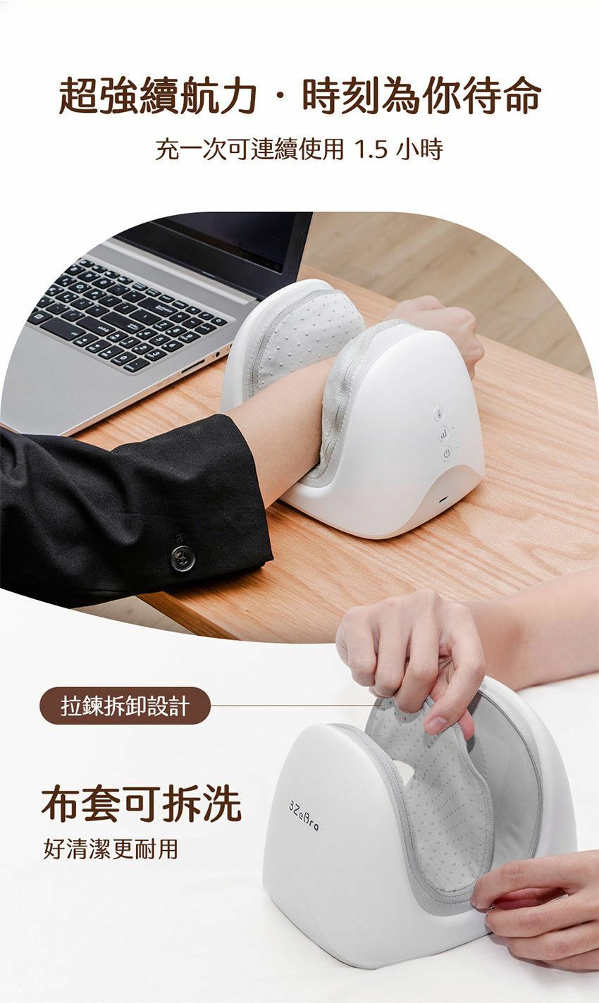 做家務,工作長時間使用電腦又搬東搬西經常都會令手腕出現問題,3zebra推出手足兩用氣壓按摩器,無論手腕腳腕都可以按!充電一次可用90分鐘,每日按15分鐘,為辛苦的一天打造舒壓時刻!