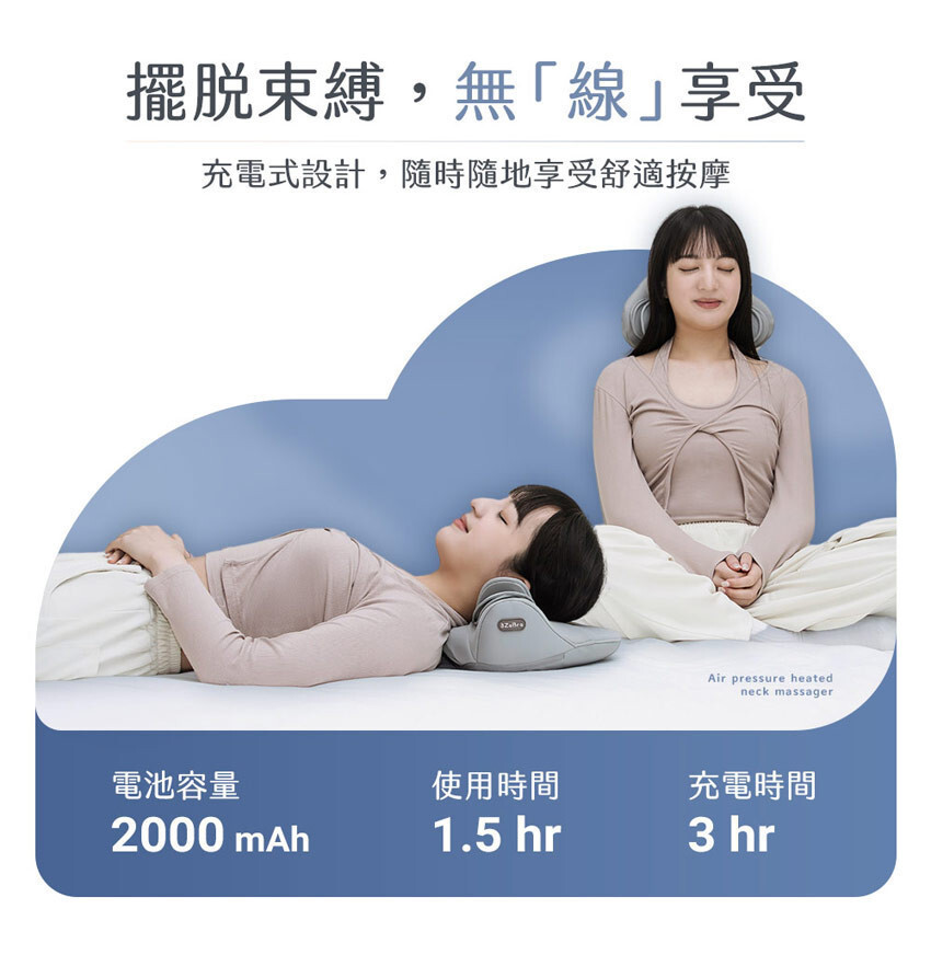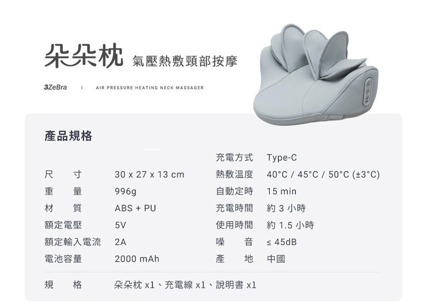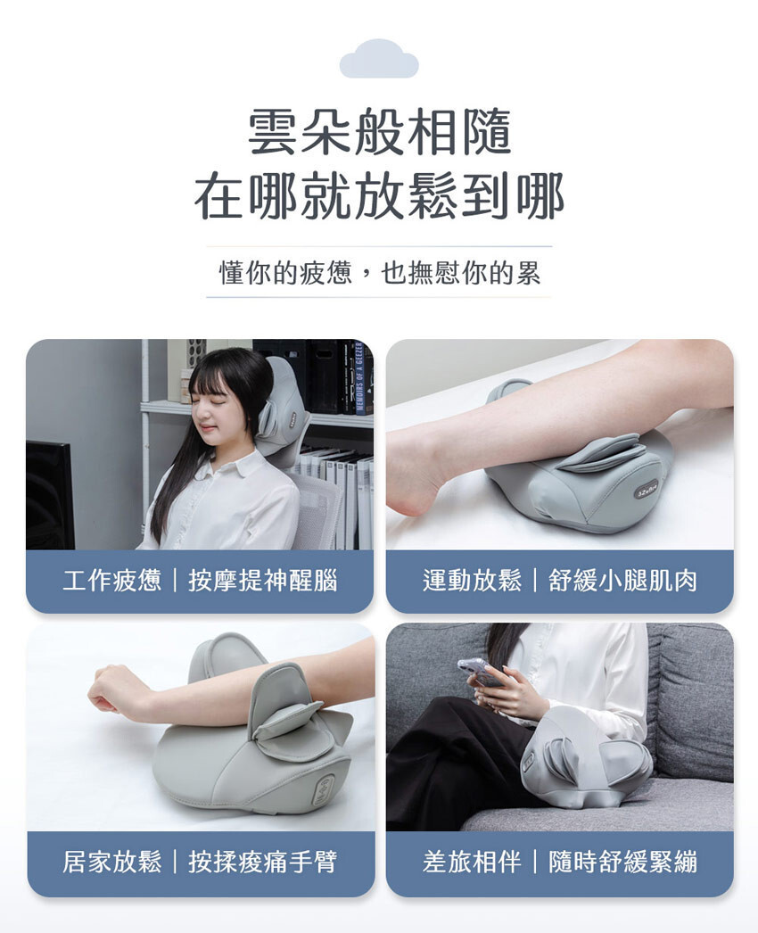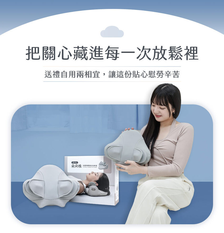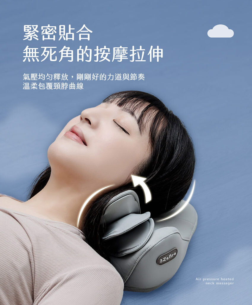 睡覺落枕?工作導致肩頸又痠又緊?沒時間去按摩?台灣3ZeBra全新推出氣壓熱敷頸部按摩器─朵朵枕,在家也可能享受專業按摩師的按摩體驗。特創3D分層式氣囊,雲感承批超有感!升級按摩力度,擬專業按摩師手勁,快來享受「你的專屬按摩師」吧