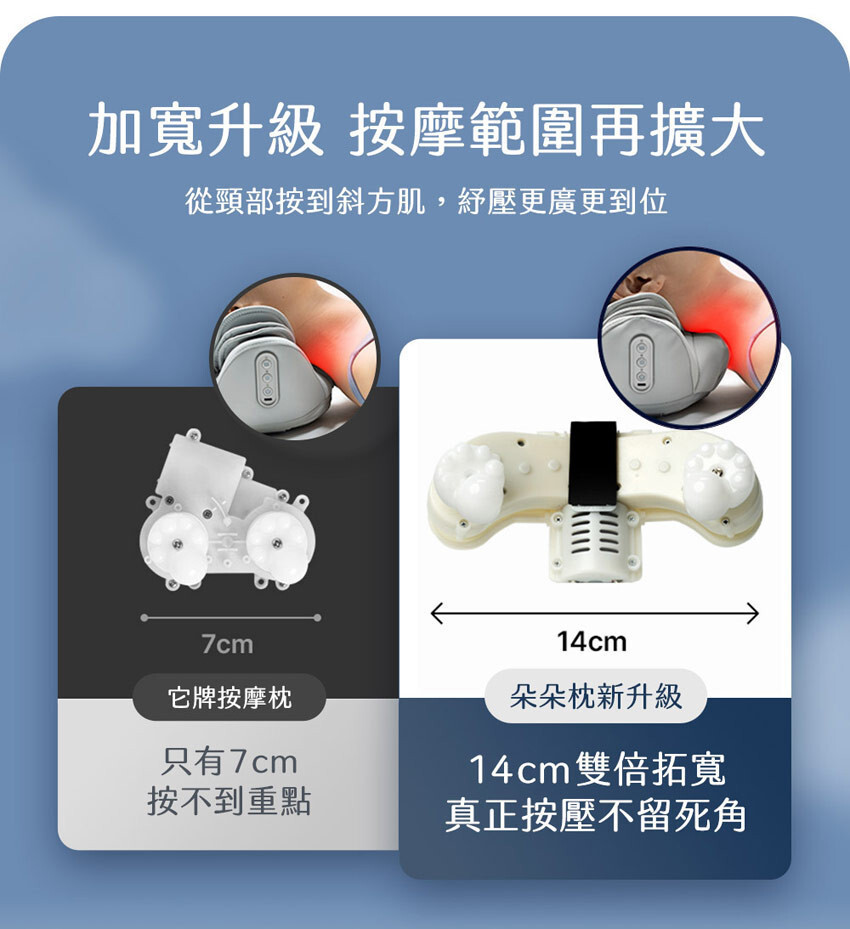 ❻ 14 cm 加寬按摩頭,從頸部按到斜方肌