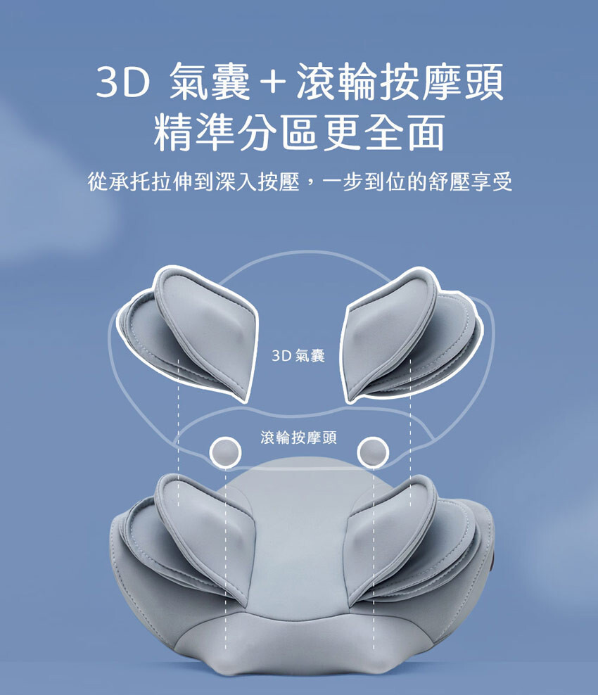 ❶ 6片 3D 分層氣囊,左右拉伸頸脖舒緩